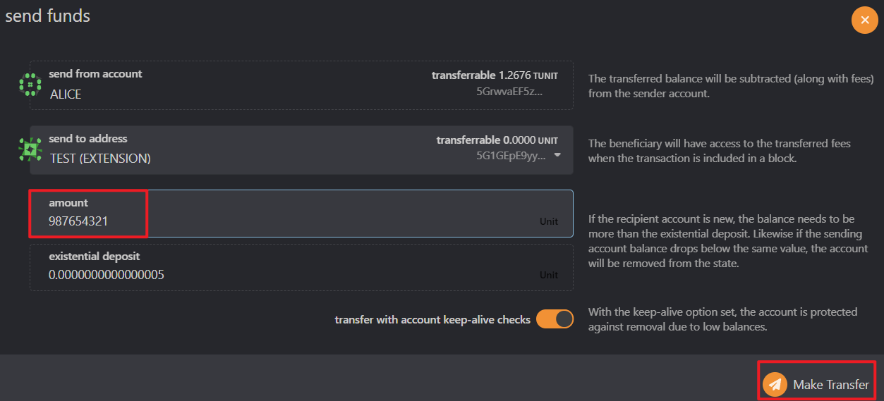 Click on the "Jump" link in the Faucet URL to obtain test tokens on the Swanky Node's local network.