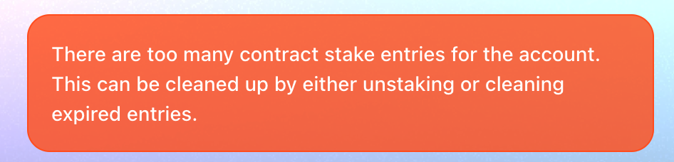 Q: I've staked 16 dApps and now I can't add or move tokens and I'm getting an error. What should I do?