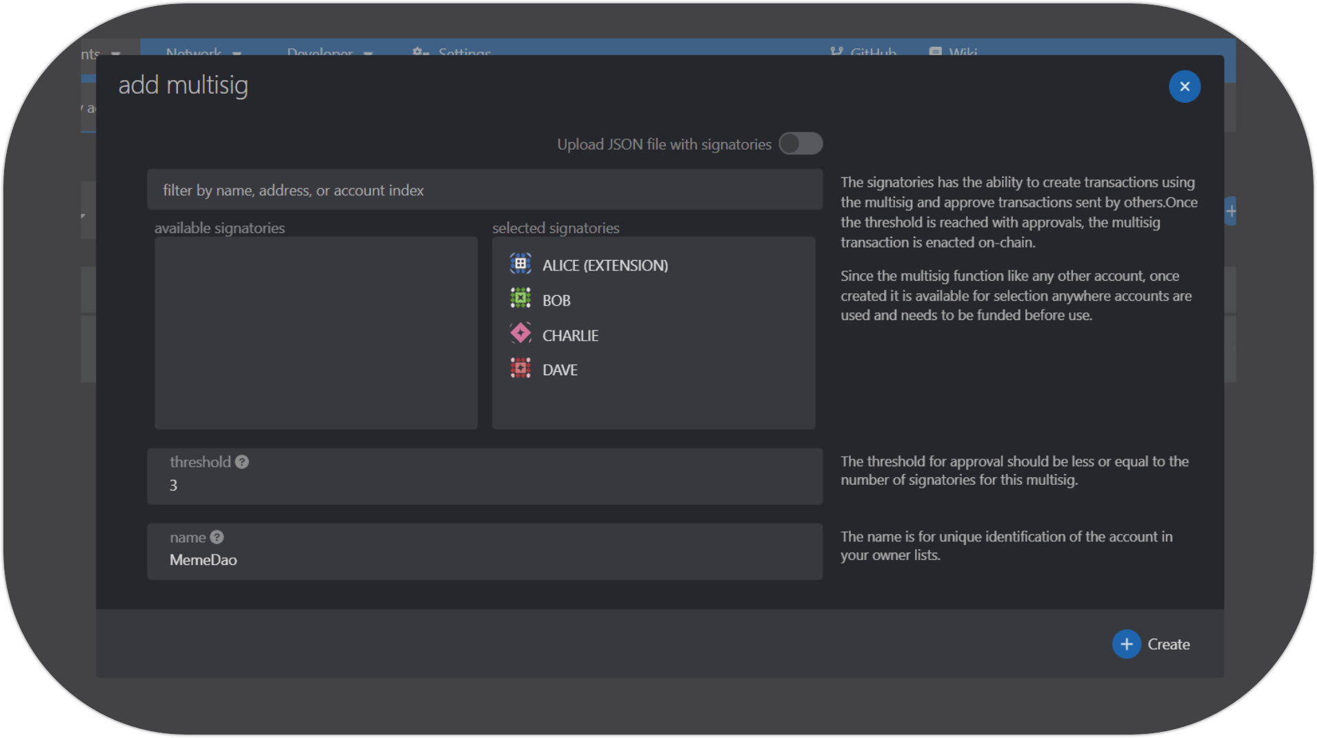 This tutorial serves as a guide to create a multisig substrate wallet.
