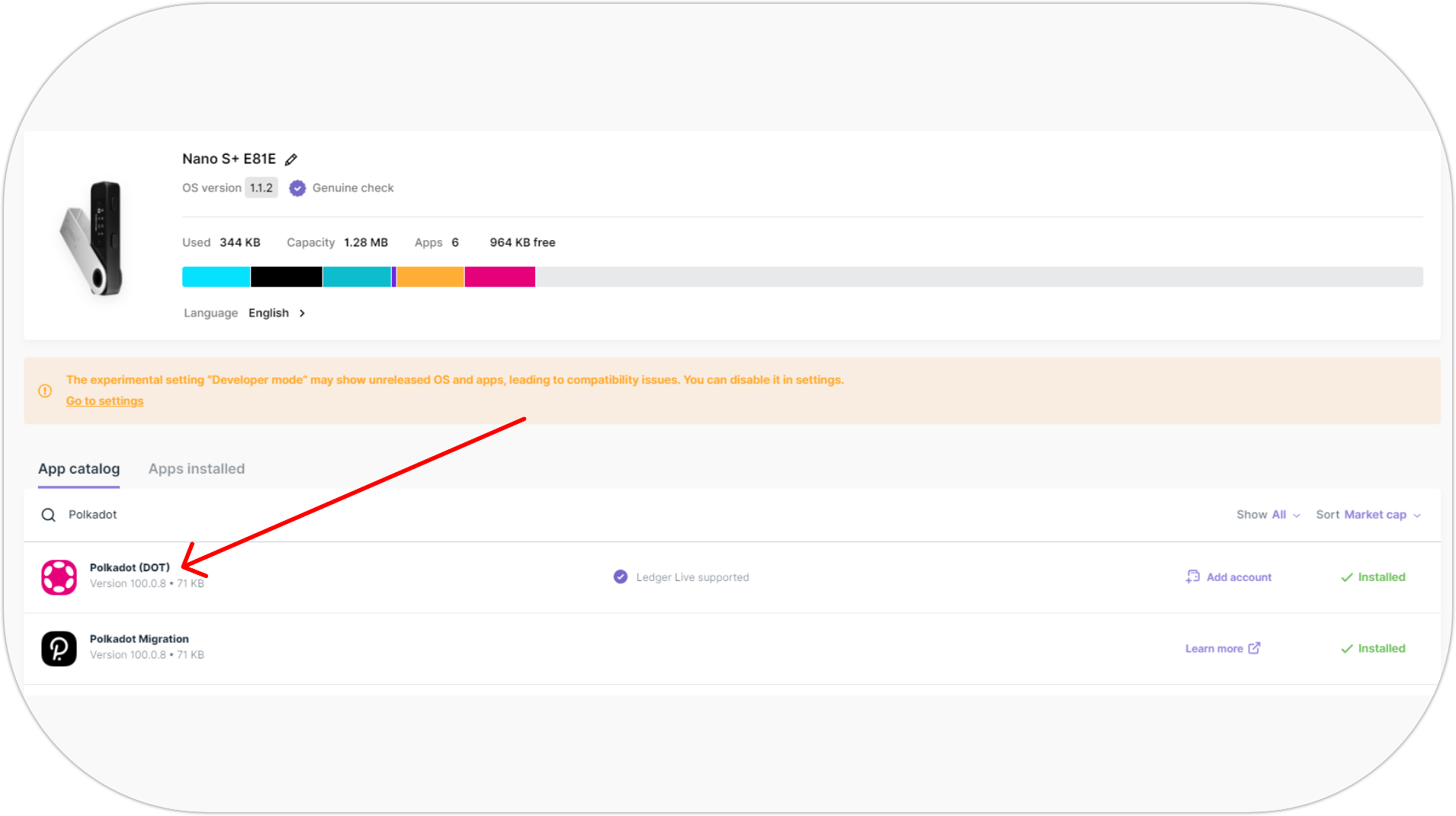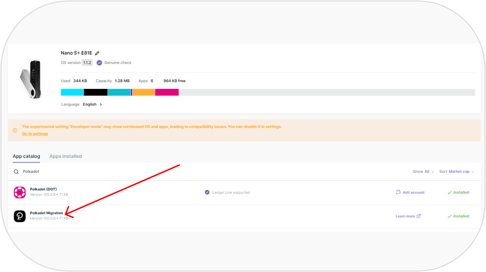Polkadot (DOT) and Polkadot Migration are Ledger-integrated apps that allow users to use a Ledger device as an account and sign transactions for substrate accounts.
