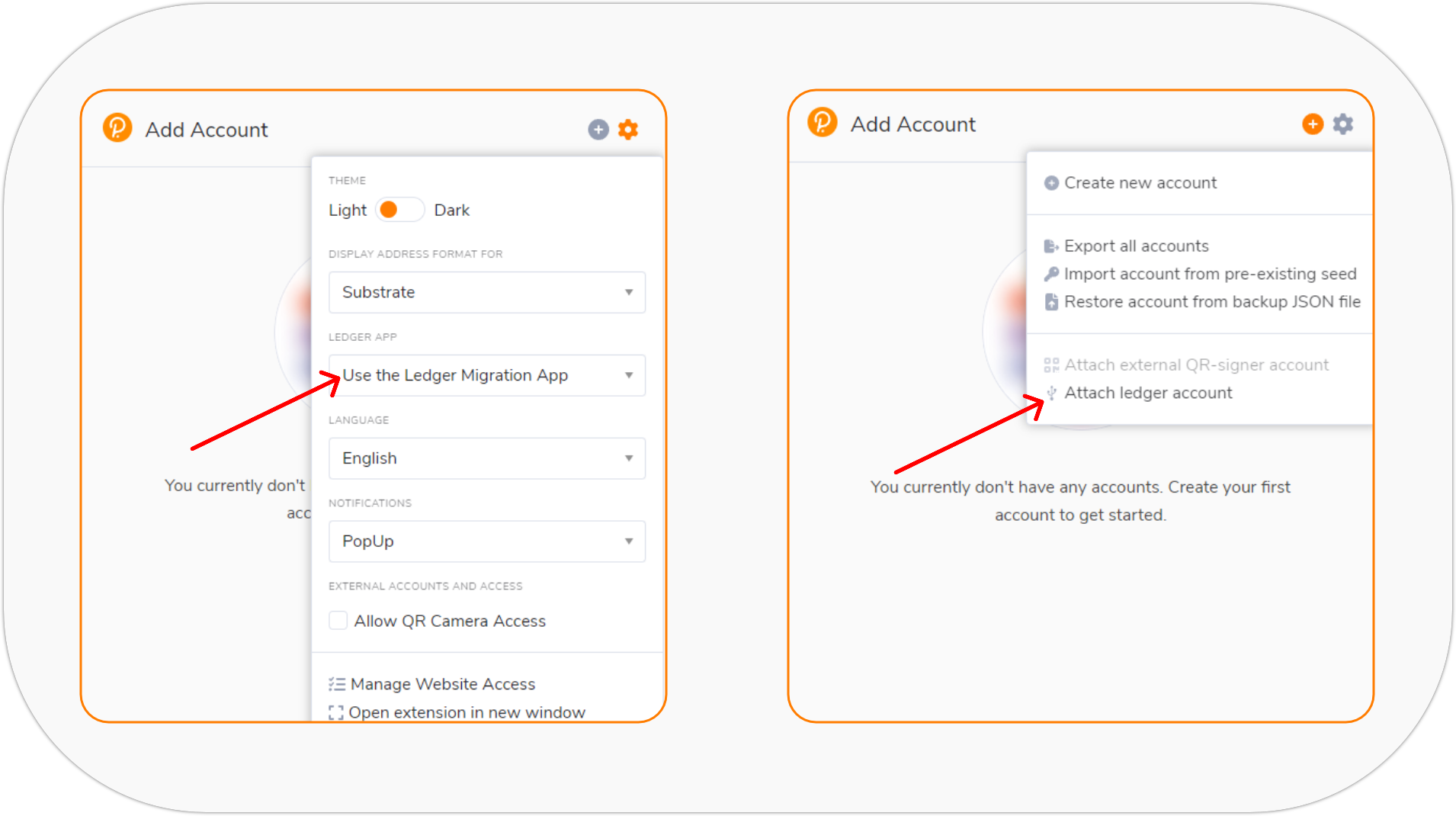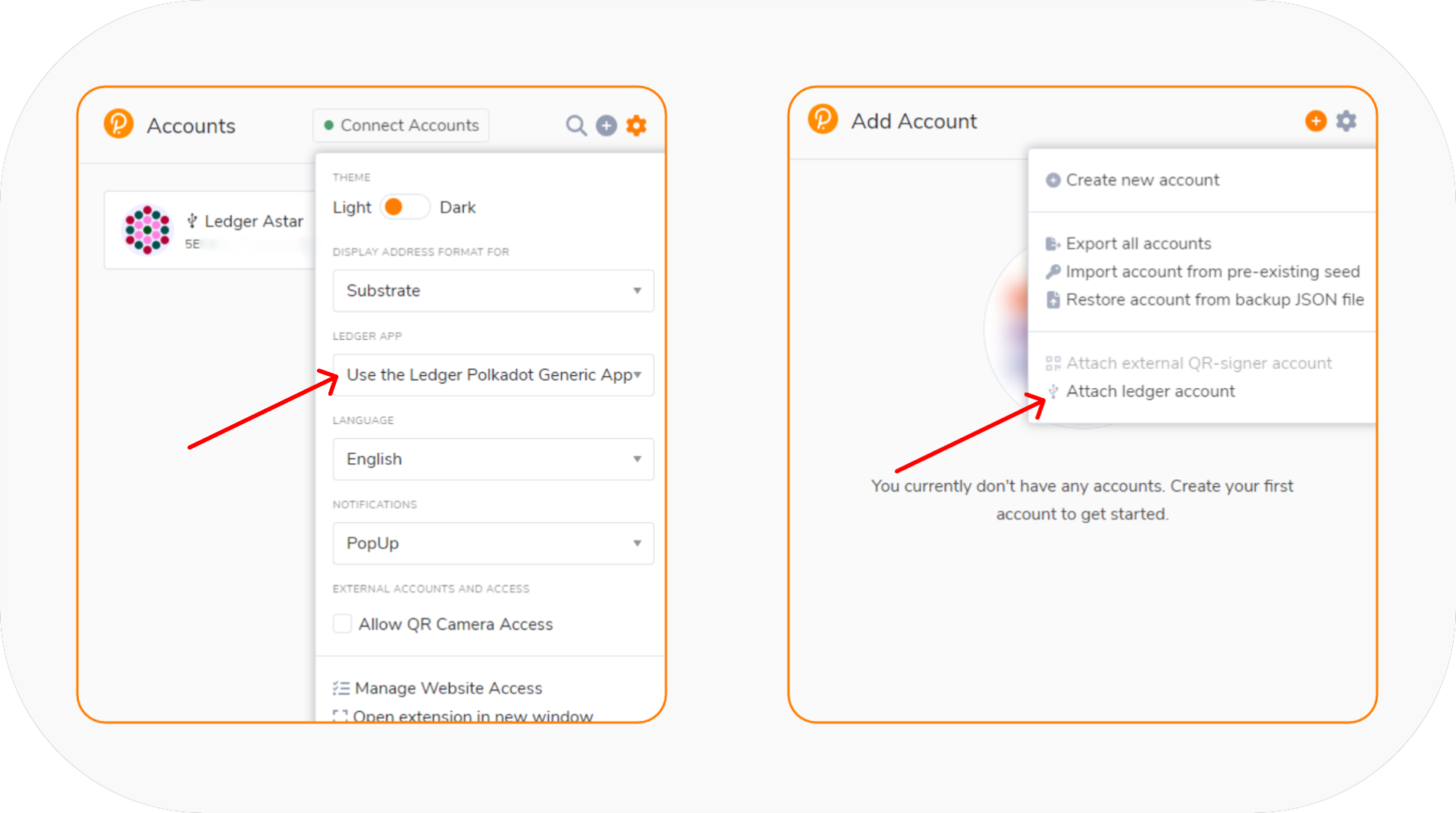 in Ledger App setting; - Click on Attach Ledger account as shown below;