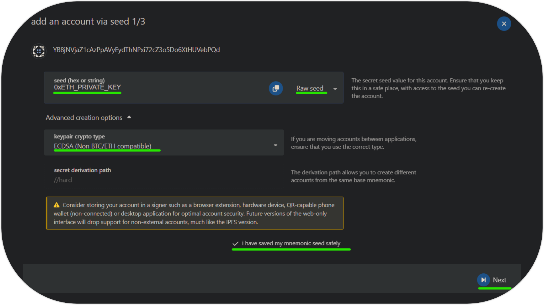 ; - Your ECDSA wallet is now restored on Polkadot{.js} and you can use it with Astar Portal.