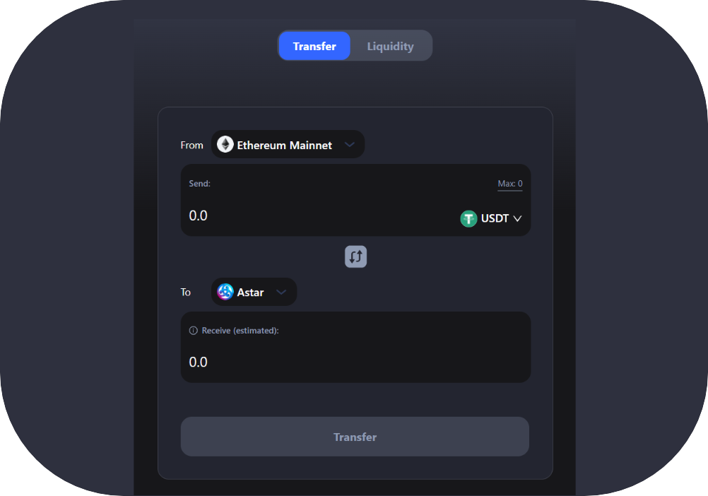 , select From Ethereum and To Astar and connect Astar EVM wallet; - Select the asset that you would like to bridge e.g USDT;